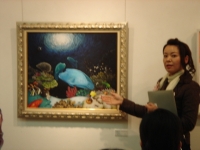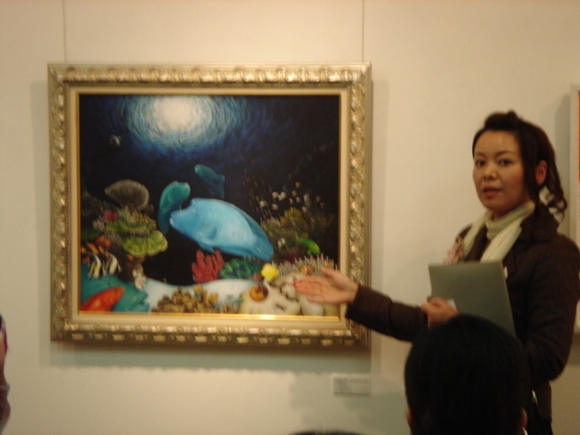 記念パーティーの時に その画廊でチョークアートの説明を50人くらいの洋画や日本画などの