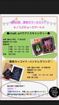 今年も16日(月)に、「オーストラリア生まれのチョークアート」と「簡単☆カッコイイハンドレタリング」を開催します。